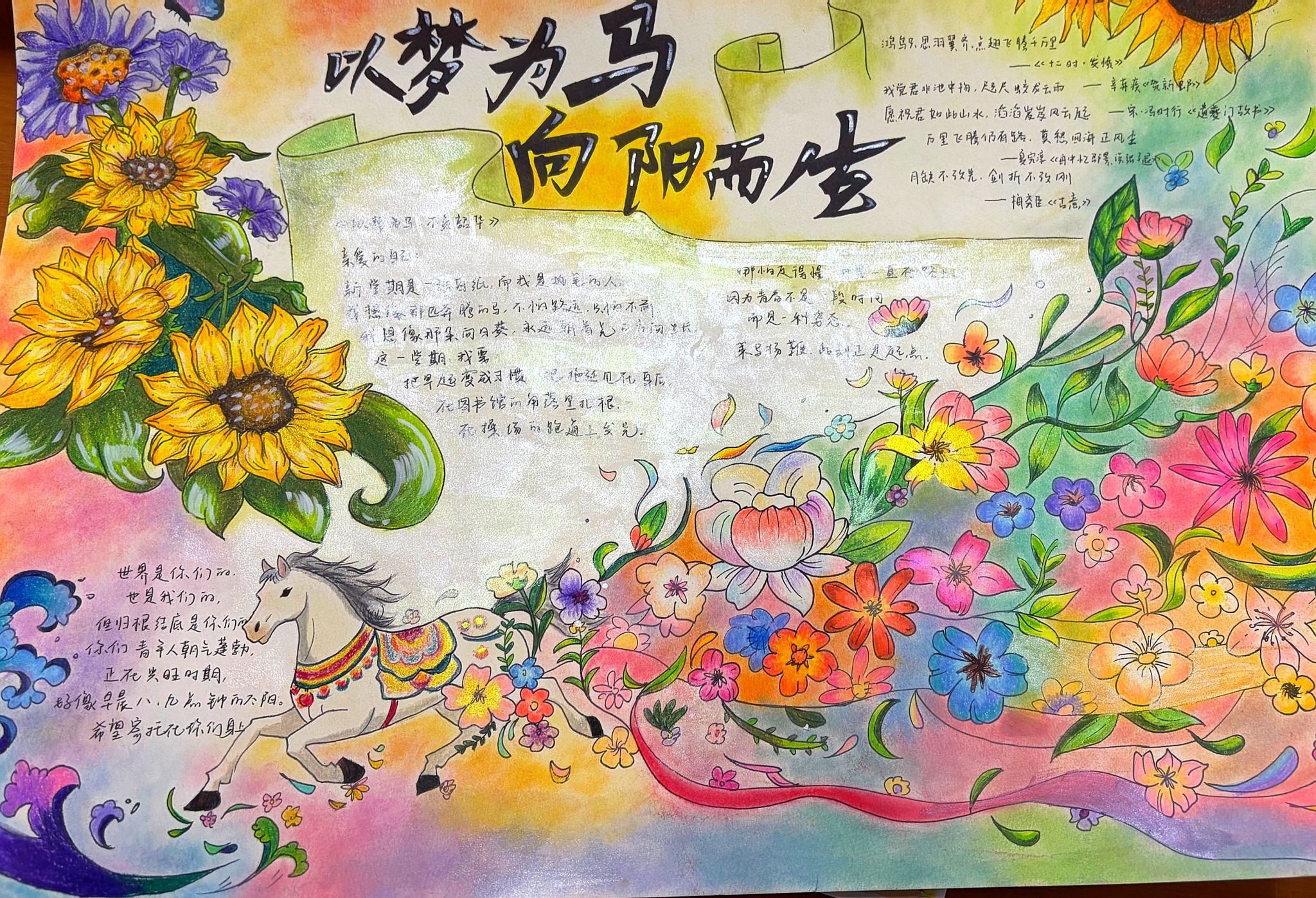 本次手抄报活动,不仅锻炼了同学们的实践能力、提升了审美素养,更为大家提供了展示自我的平台,营造了积极向上的校园氛围,激励全体同学以饱满的热情策马前行,奋力开启新学期新征程。