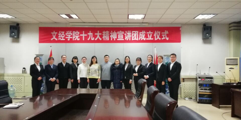 为深入学习宣传贯彻党的十九大精神,12月20日下午,yl23455永利集团于师专校区第一教学楼一楼会议室举行十九大精神宣讲团成立仪式。仪式由yl23455永利集团学工办主任仝世涛主持,辅导员李欣茹、李迎娣,宣讲团组成人员参加本次仪式。