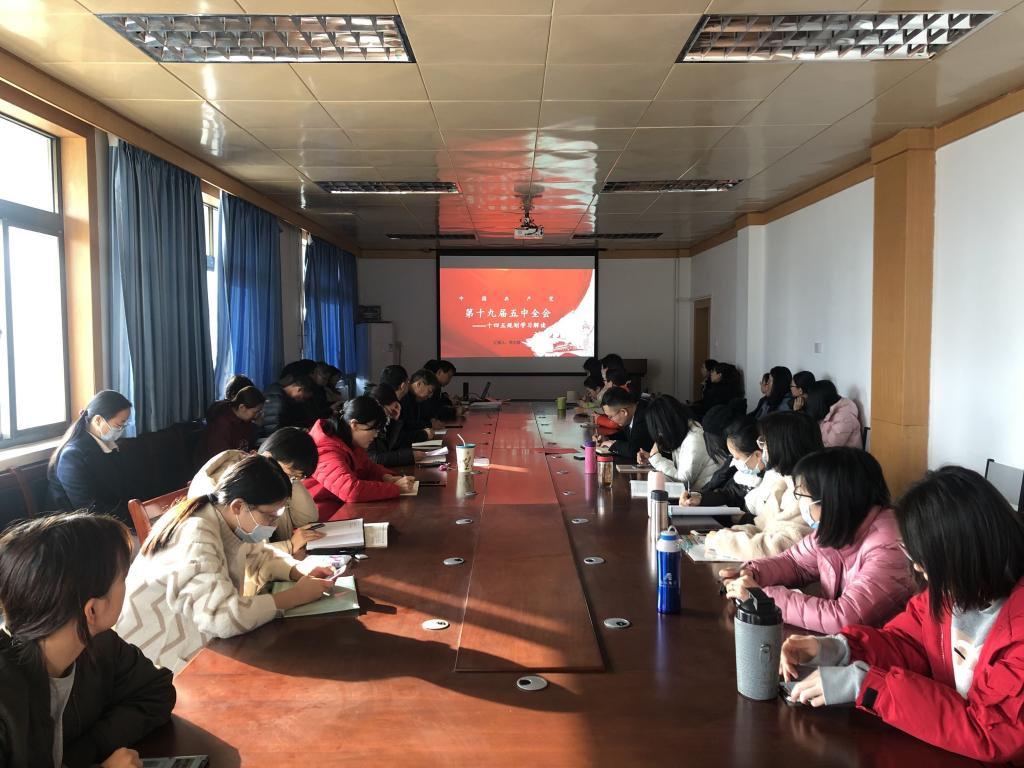 经管党支部书记李大容从经济方面对十九届五中全会进行了解读。她提出:在“两个一百年”历史交汇点上,党中央召开十九届五中全会,重点研究“十四五”规划问题,描绘国家未来发展蓝图,明确前进方向和奋斗目标,对于激励全党全国各族人民,战胜前进道路上各种风险挑战,为全面建设社会主义现代化国家开好局、起好步,具有十分重要的意义。