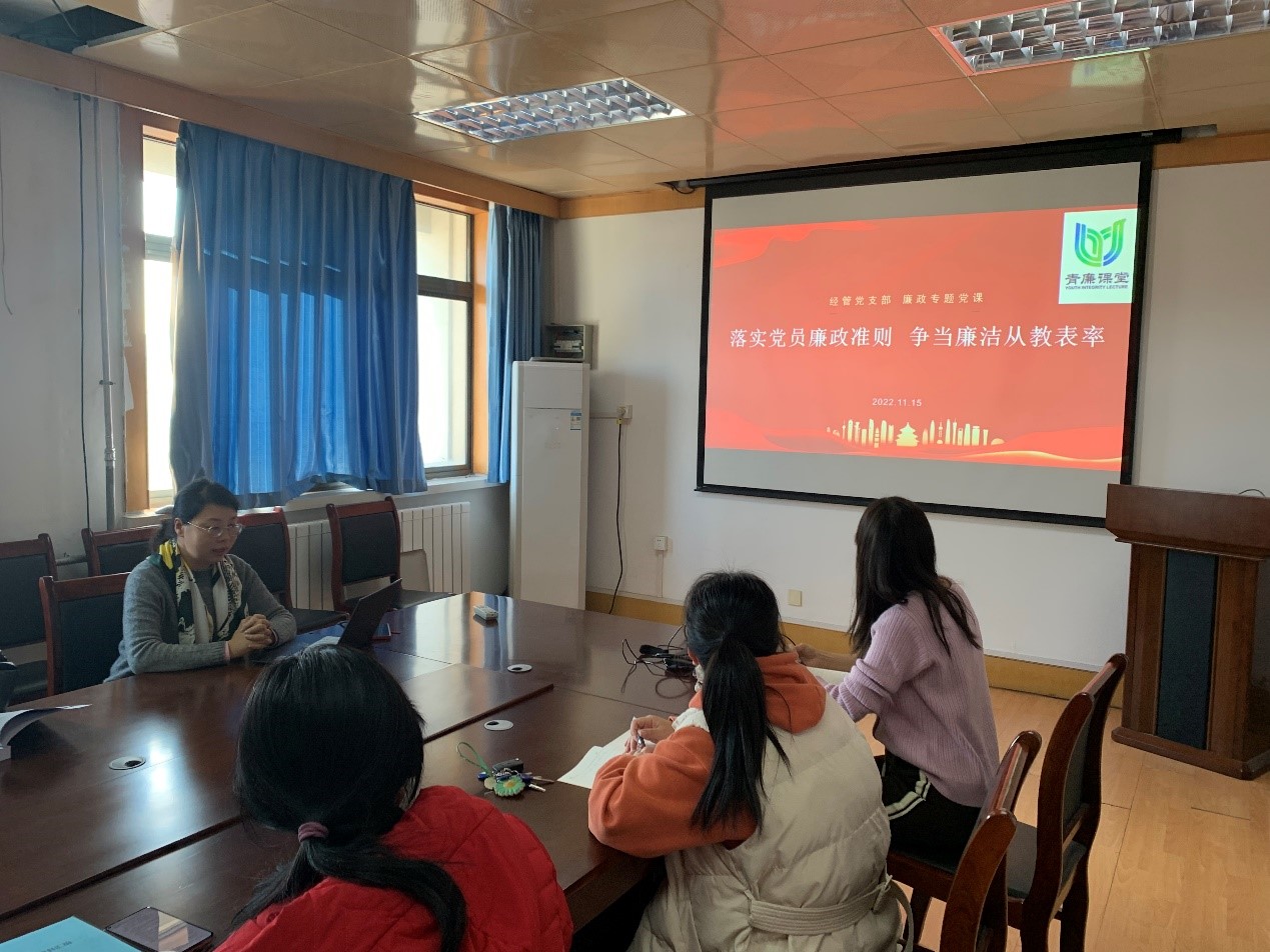 为扎实推进党风廉政建设和反腐败工作,一体推进不敢腐、不能腐、不想腐,持续加强正风反腐教育和廉洁文化建设,11月15日下午,经管党支部在师专校区办公楼411会议室开展风廉政主题党课活动。