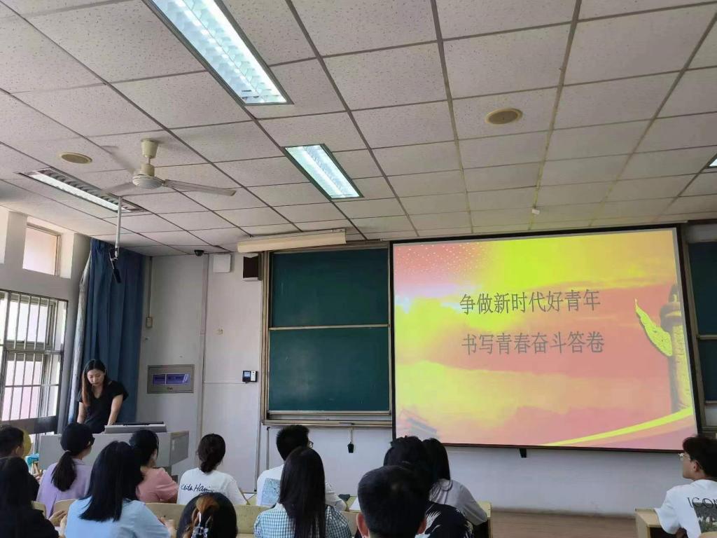 为弘扬党的二十大精神,深入贯彻学习习近平新时代中国特色社会主义思想,激励青年向上向善、奋发有为,争做新时代新青年,法学系学生党支部书记时晓馨于6月9日在第四教学楼4209为学生党员开展“争做时代青年,书写奋斗答卷”专题党课。