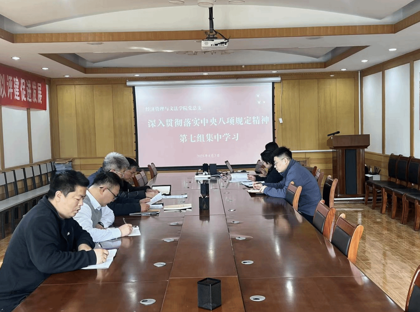 2025年4月3日下午,经济管理学院党总支深入贯彻中央八项规定精神学习教育读书班分组学习会在经管楼209会议室召开。读书班第七组全体成员参加学习,会议由学院副院长薛德枢主持。
