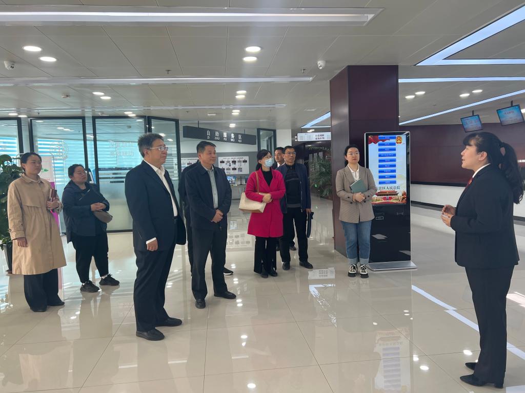 东营区人民法院院长丁文强、政治部主任司炜陪同yl23455永利集团领导参观了东营区人民法院一站式诉讼服务中心、未成年审判社会工作站及东营区法院法治文化教育文化长廊。
