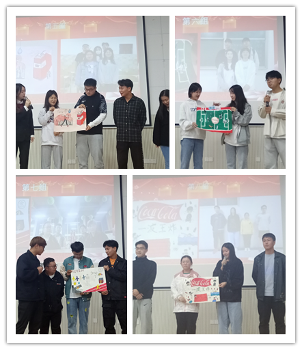 接下来,11个参赛队伍按顺序依次上台进行风格各异但同样精彩的参赛团队风采和创意海报展示。各参赛队围绕大赛主题“可口可乐,陪你快乐健康动起来”,加入可口可乐产品、运动、健康、快乐等元素,发挥团队智慧,进行了丰富多彩的创意海报设计。展示环节,意义深刻的队名、响亮的团队口号、富有创意且色彩鲜亮的海报、精彩的内涵介绍,获得现场阵阵掌声。
