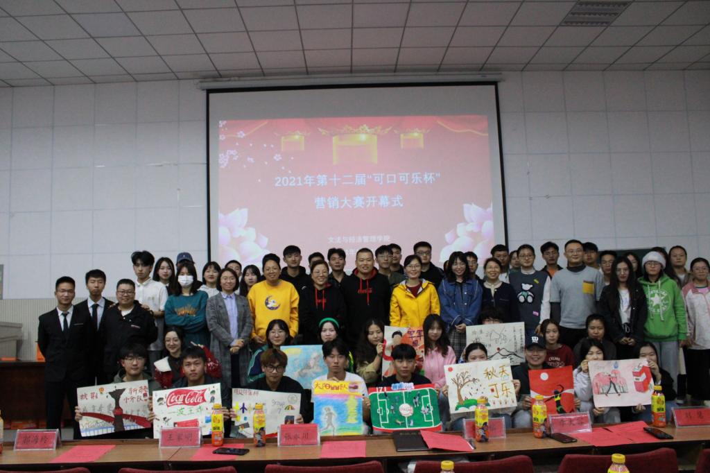 最后,在场嘉宾、领导、老师和同学们合影留念,至此第十二届可口可乐杯营销大赛开幕式圆满举行。