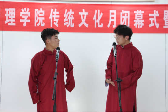紧接着,我校社团“听禧堂”为大家带来了相声《文墨人生》,说学逗唱、惟妙惟肖,响答影随、有口皆碑。