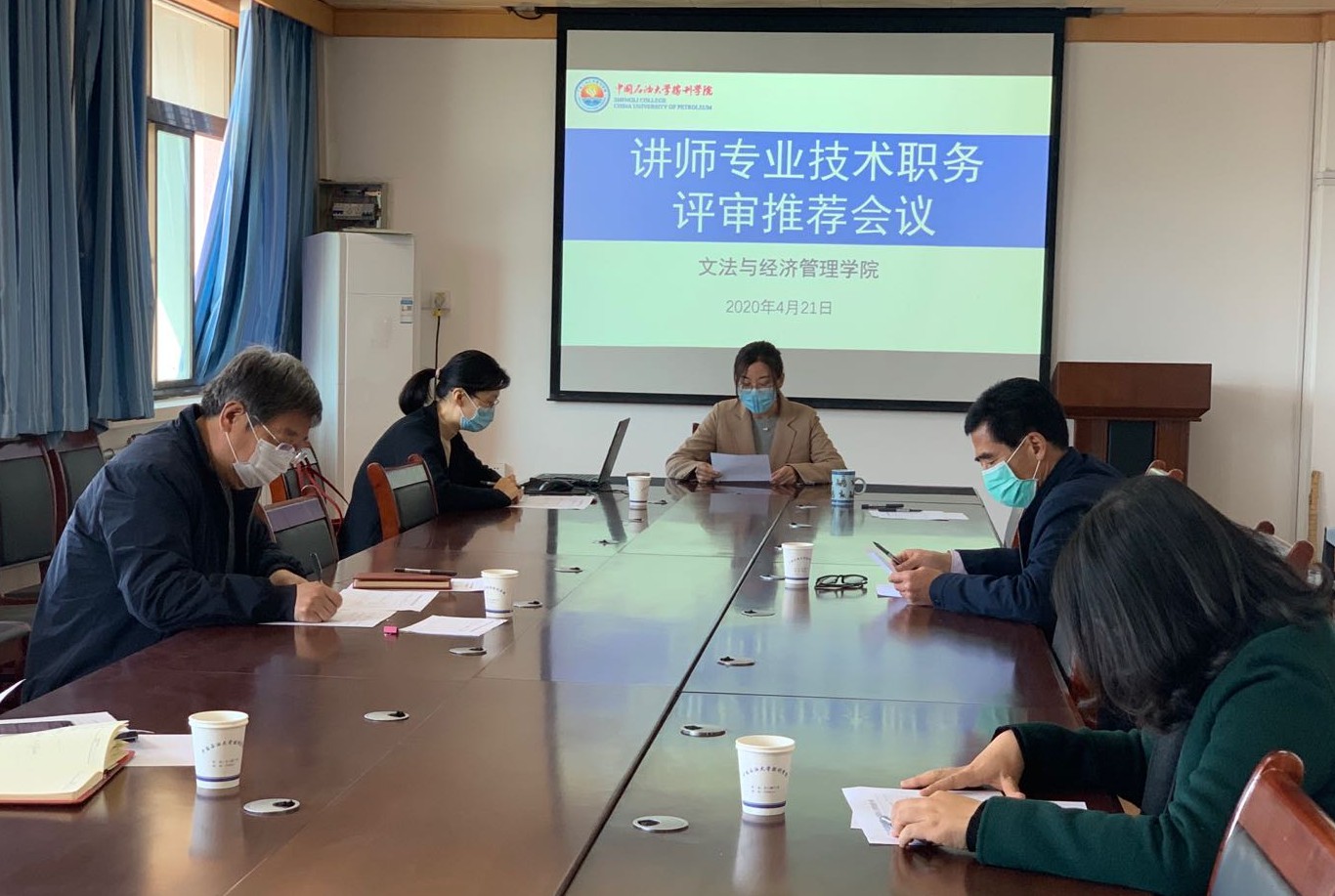 薛院长首先介绍了评审推荐小组成员的组成,传达了本次评审推荐工作的程序与要求。接着,各参评教师分别进行了述职答辩。评委们根据学校有关规定,对其政治思想、业务水平和业绩贡献进行综合评议。
