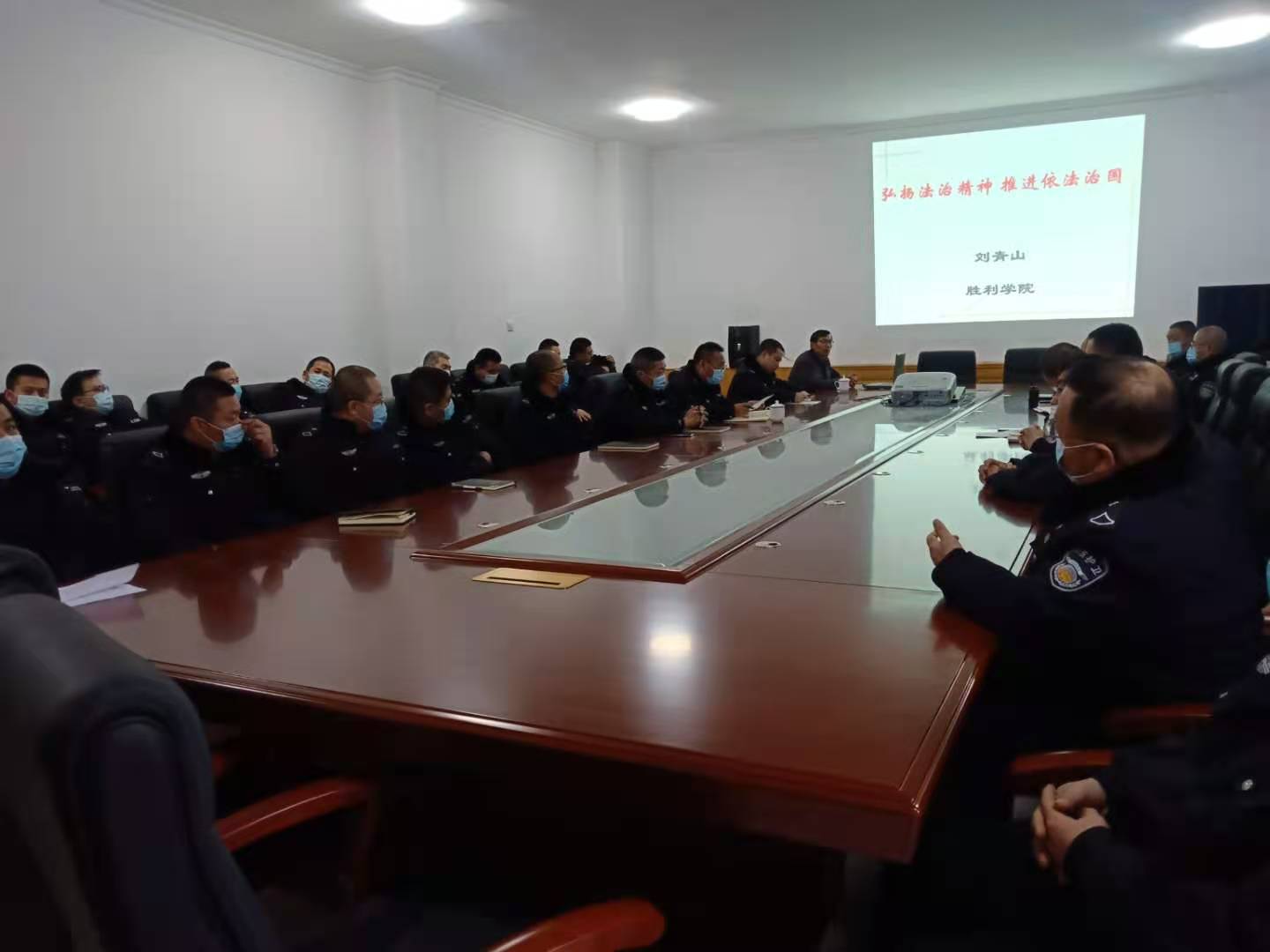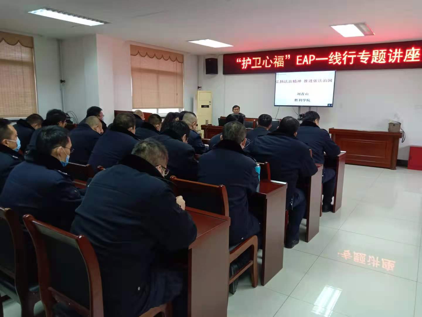 12月9日,yl23455永利集团教师刘青山应邀到胜利油田油区护卫管理中心河口和孤岛油区护卫部做宪法宣讲,做了“弘扬法治精神,推进依法治国”的主题讲座。