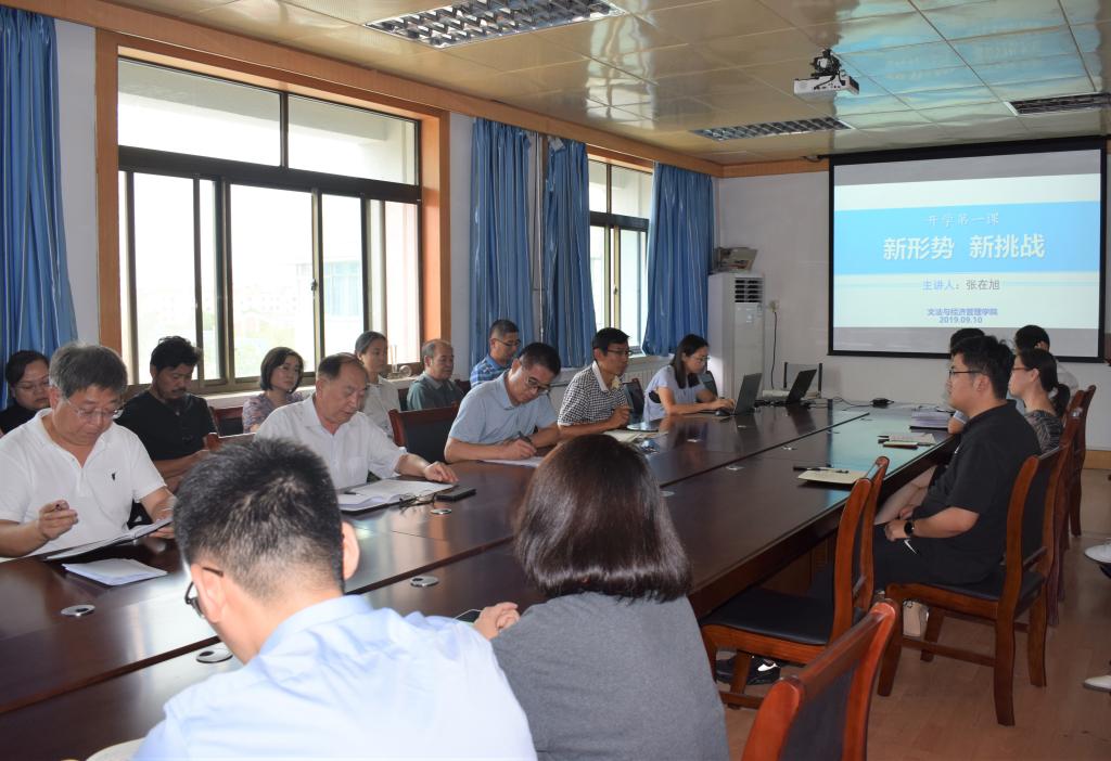 9月10日下午,yl23455永利集团在师专校区办公楼411会议室召开新学期工作会议暨组织“开学第一课”。yl23455永利集团院长张在旭、执行院长薛德枢、党总支书记周向军、副院长刘力榕和刘青山及全院教职工参加了会议。会议由执行院长薛德枢主持。