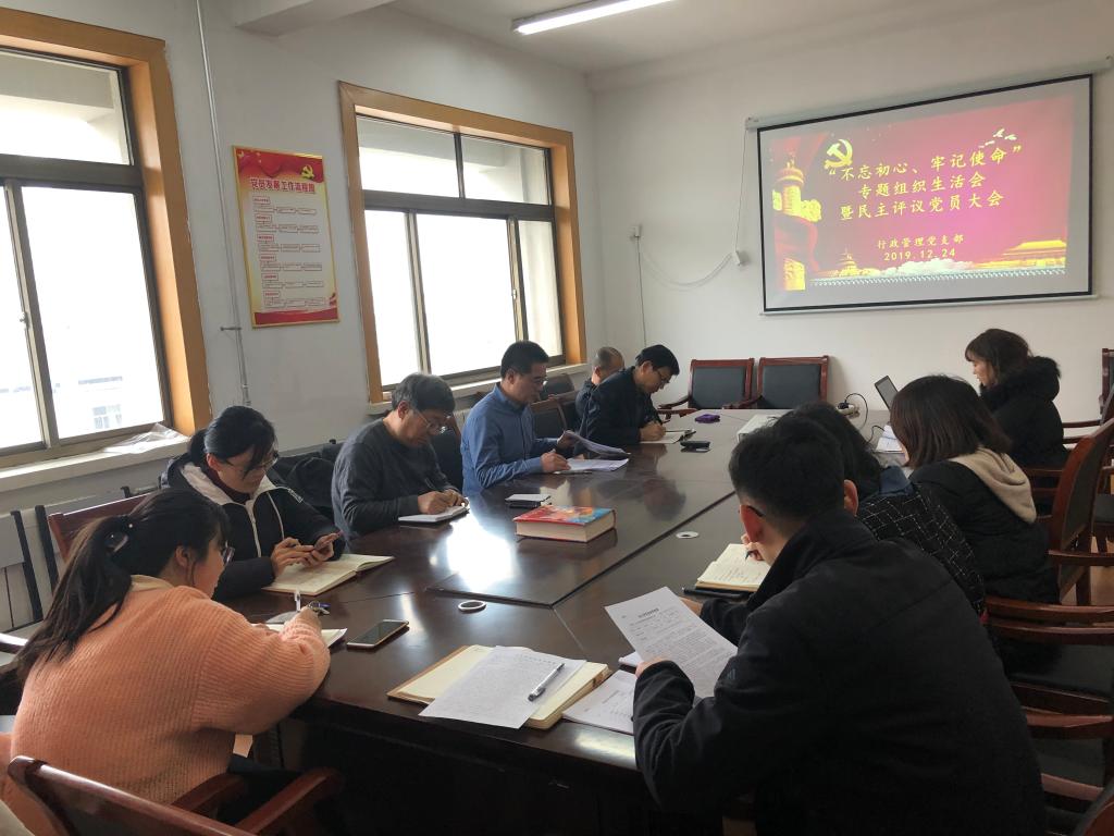 12月24日下午,文法与经济管理学院行政管理党支部在师专校区办公楼403党员活动室召开“不忘初心、牢记使命”专题组织生活会暨民主评议党员大会。大会由文经学院行政管理党支部书记李昕如主持,行政管理党支部全体党员参加会议。