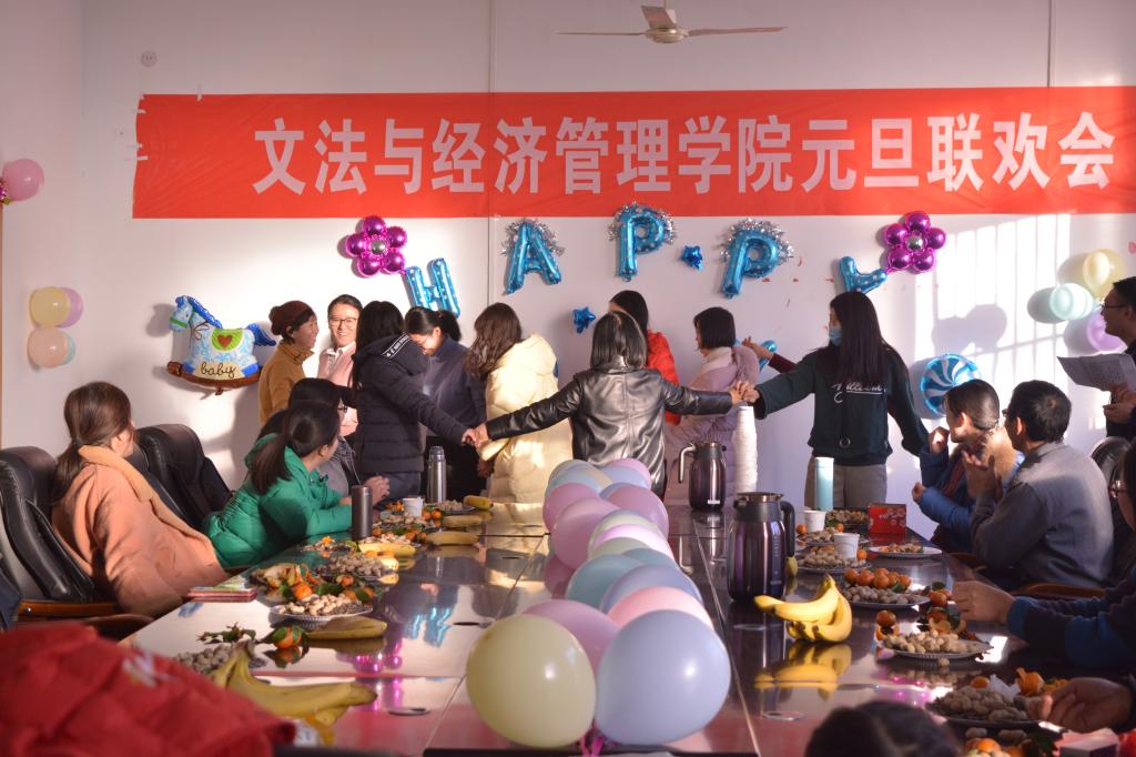 本次联欢会以教职工节目表演与趣味游戏相结合,穿插进行,精彩纷呈且有趣欢畅。三位新进教师合唱《美丽的神话》抒情悠远;中文系两位女老师二重唱《山楂树》优美浪漫;法学系男声独唱《月半小夜曲》细腻动情;辅导员们舞蹈表演欢快活泼;经管系老师的孩子们也来助阵表演,可爱天真美好,赢得了大家的阵阵掌声。期间,猜成语、抢板凳、解手链等趣味游戏更是将现场气氛一次次推向高潮。最后,在欢声笑语与意欲未尽中,本次联欢会圆满落下帷幕。