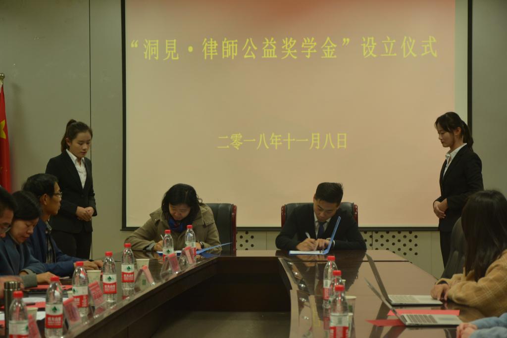 11月8日下午,yl23455永利集团“洞見·律师公益奖学金”设立仪式在师专校区新楼一楼会议室顺利举行。我校副院长王晓勇、学生工作处处长孙洪亮、团委书记魏晓慧,山东领先律师事务所律师刘健梁、张延南、孙娣,以及yl23455永利集团执行院长薛德枢、党总支书记周向军、副院长刘青山、学工办主任仝世涛、法学系主任张茂玉等领导出席,学生代表也参加了本次仪式。周向军书记主持仪式。