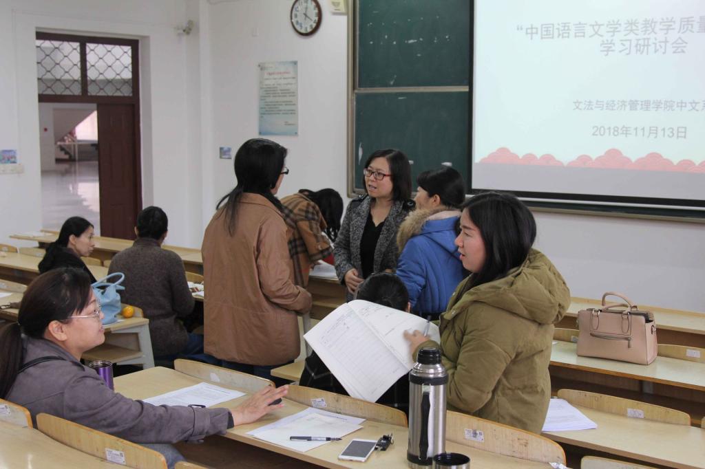 首先,中文系各教研室主任带领大家学习新国标。之后,围绕新国标的要求,汉语言文学、汉语国际教育、秘书学、文秘四个专业的教师分别发言。李秀娟老师提出,可将网络优质资源融入课堂教学,使教学更加生动有趣,更好地激发学生的学习兴趣。黄渊红老师提出“英语作为专业选修该如何定位”的问题,并与其他老师进行交流和讨论。秘书学、文秘专业的教师也就目前本专业教学情况作出分析。同时,各教师针对目前中文系教学工作存在的问题进行讨论,如新国标中要求的汉语言文学专业的“编辑出版与实践”课程、汉语国际教育专业的“汉字与汉字教学”课程仍未开设。今后应按新国标要求全面开设相关课程,加强学生对中华传统文化的学习,使学生热爱中华民族优秀传统文化,培养其良好的人文素养。