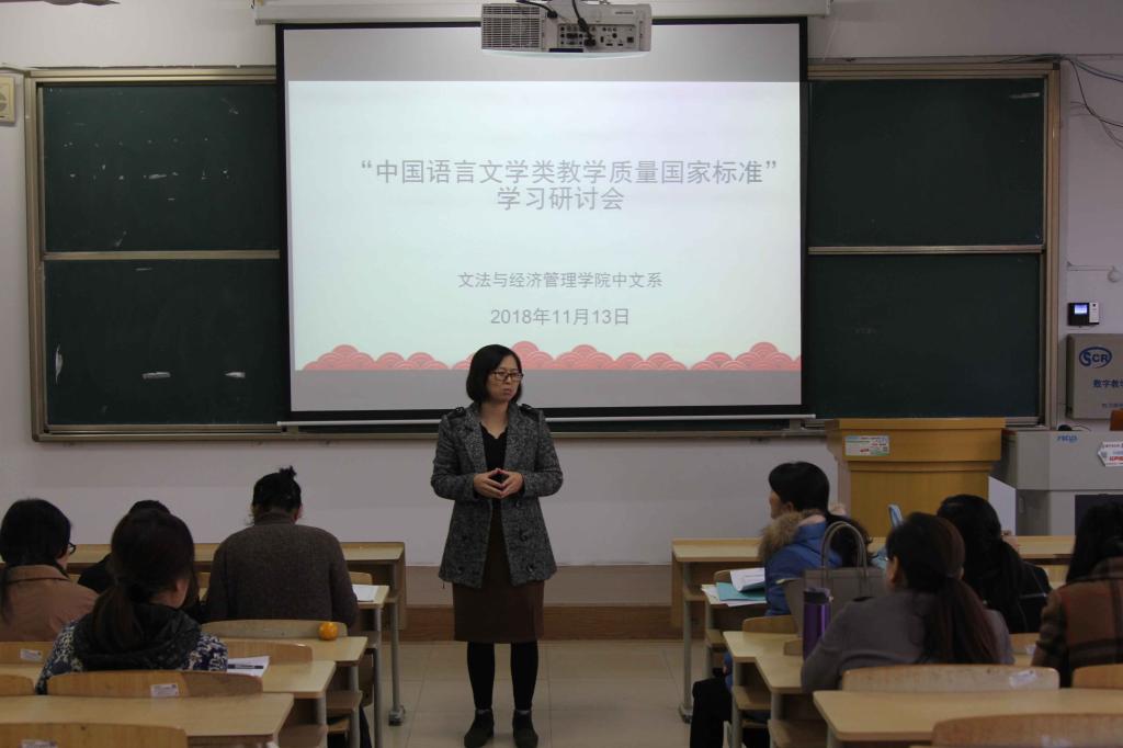 11月13日下午四点,yl23455永利集团中文系在师专校区新教106教室举办“中国语言文学类教学质量国家标准”学习研讨会。会议由中文系主任刘娟主持,中文系教师参加了本次会议。