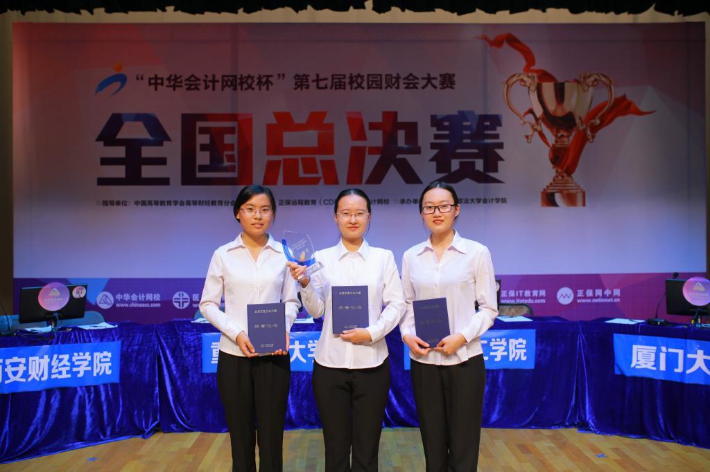 10月31日至11月2日,“中华会计网校杯”第七届全国校园财会大赛全国总决赛在中南财经政法大学举行,yl23455永利集团15级会计专业的王晓涵、李璐、戴亚婷三位同学组成代表队,在杨琳老师的带领下参赛并最终获得全国总决赛高职组三等奖。