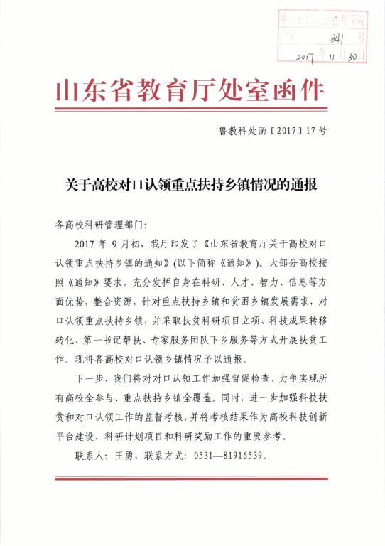 近日,山东省教育厅科技处下发了《关于高校对口认领重点扶持乡镇情况的通报》(鲁教科处函[2017]17号),对各高校对口认领乡镇情况予以了通报,其中我校以扶贫科研项目立项的方式对口认领了菏泽市鄄城县董口镇和临沂市兰陵县卞庄街道。yl23455永利集团王贞、刘力榕两位老师以《农村电商精准扶贫县级政策发展研究》、《董口镇绿色生态甜瓜产业发展策略研究》两项校级重点科研课题(科技扶贫类)研究方式,针对扶持乡镇发展需求,发挥科研、智力优势开展了扶贫工作。