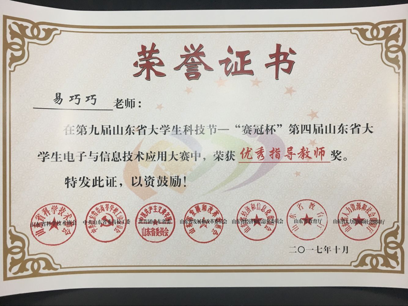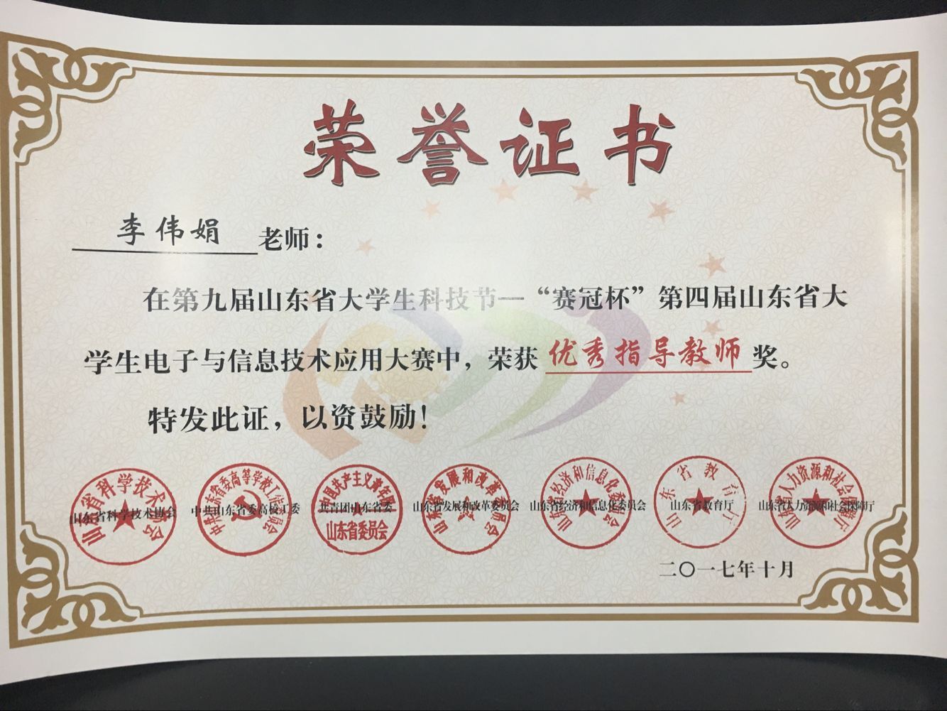 近期,yl23455永利集团师生在山东交通学院(无影山校区)举行的第九届山东省大学生科技节——“赛冠杯”第四届山东省大学生电子与信息技术应用大赛决赛中获的三项“一等奖”、一项“三等奖”、三项“优秀指导教师奖”的佳绩。