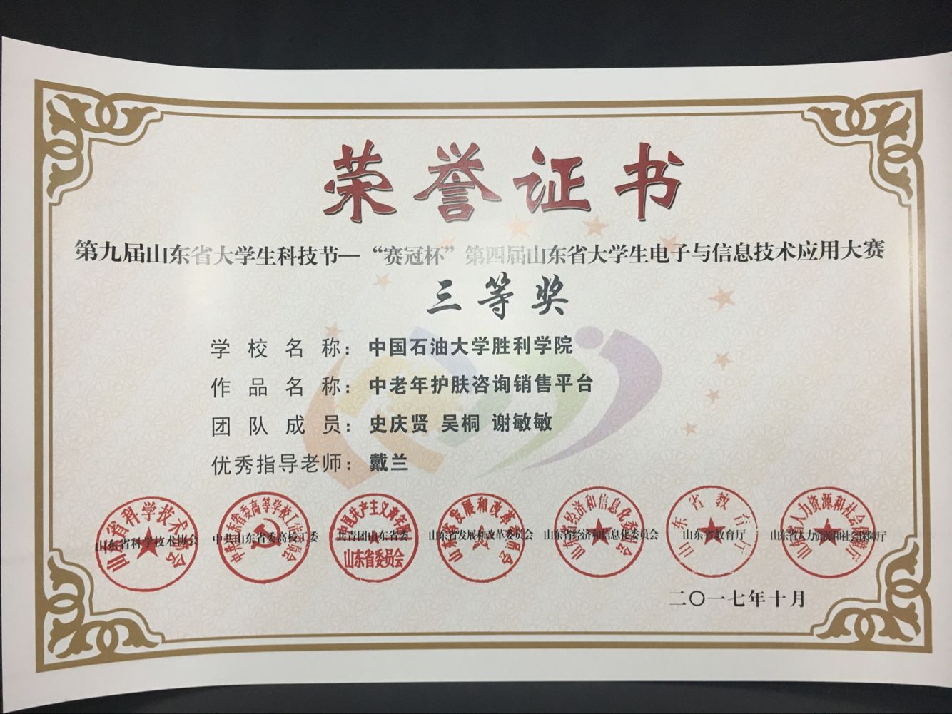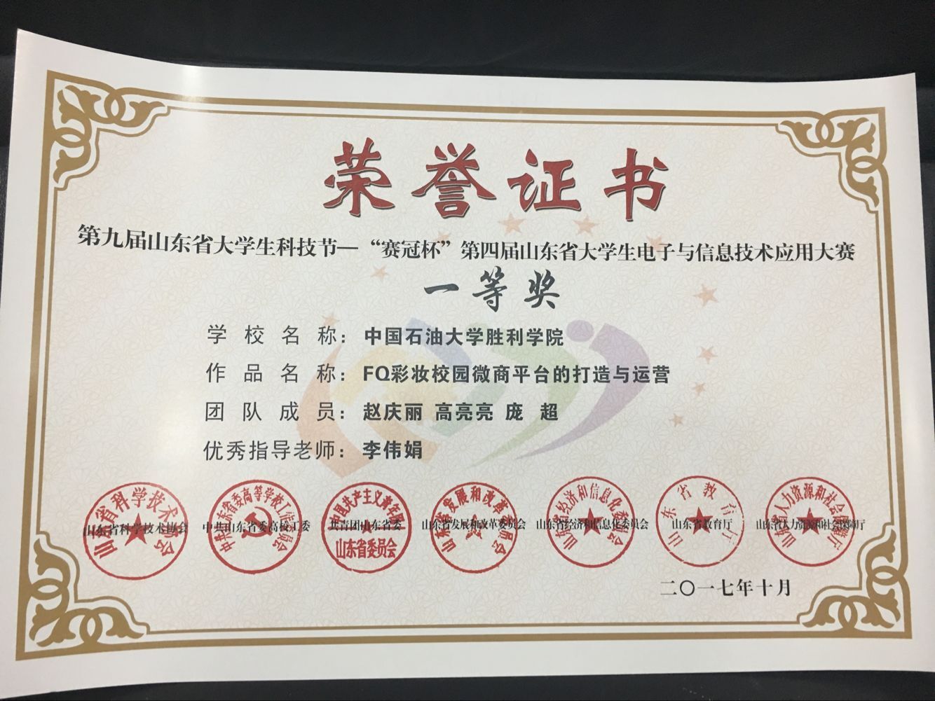 此次比赛中,yl23455永利集团的李艳婷、侯小秋、王再玄同学的参赛作品《二十四小时》获数字艺术中的微电影项“一等奖”;魏雨欣、高悦、周佩延同学的参赛作品《“妈咪放心”的开发与运营策划》获电子商务“一等奖”;赵庆丽、高亮亮、庞超同学的参赛作品《FQ彩妆校园微商平台的打造与运营》获电子商务“一等奖”;史庆贤、吴桐、谢敏敏同学的参赛作品《中老年护肤咨询销售平台》获电子商务“三等奖”。此外,易巧巧、王家明、李伟娟三位老师分别获得“优秀指导教师奖”。