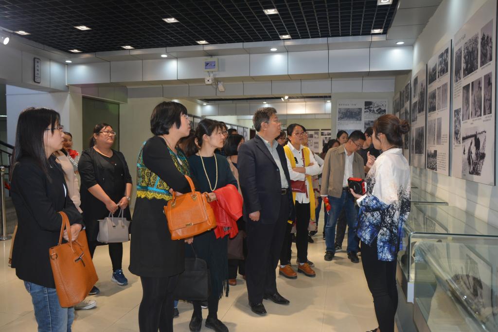 在渤海垦区革命纪念馆,大家在解说员的指引下,走进纪念馆展厅,详细了解了垦区抗日根据地的创建历史,并浏览了垦区移民传统民间工艺、民间生活生产工具、民风民俗等资料和实物。
