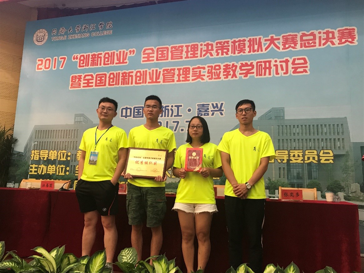 全国管理决策模拟大赛由教育部高等学校工商管理类专业教学指导委员会指导,全国管理决策模拟大赛组委会主办,采用《商道》企业经营模拟系统作为竞赛平台。大赛旨在推动高校经管类实验教学改革,强化实践教学环节,促进学生的能力培养,使学生在实践中深入掌握和运用企业经营管理及决策知识,剖析企业运营过程,提高创业与就业的实践能力,进一步提高本科教学的质量。该赛事自2009年首次举办,全国近800所高校超过五十万人的积极响应。2017年大赛自2016年9月启动,据统计,全国700多所高校31000多支学生团队的踊跃参与,经过校内初赛、大区复赛、全国半决赛的重重过关斩将,最终96支队伍晋级全国总决赛,于同济大学浙江学院展开巅峰对决。