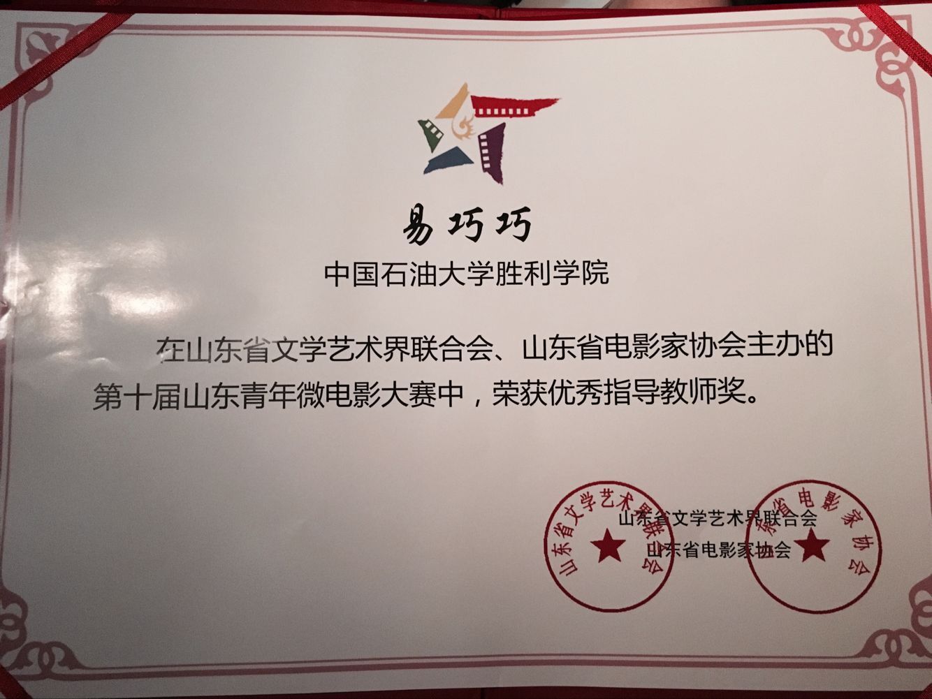 9月22日,第十届山东青年微电影大赛颁奖典礼在山东省会大剧院隆重举办。中国电影家协会副秘书长孙崇磊,著名表演艺术家李保田,八一电影制片厂研究室主任、著名评论家张东,著名编剧、导演、表演艺术家英壮,中国台湾著名影视演员王思懿等出席并颁奖。yl23455永利集团拍摄的《24小时》从来自全国的千余部参赛作品中脱颖而出,斩获公益片一等奖,中文系教师易巧巧荣获优秀指导老师称号。这也是东营地区政府机关、企事业单位、高校首次在这项赛事中获得最高奖项。