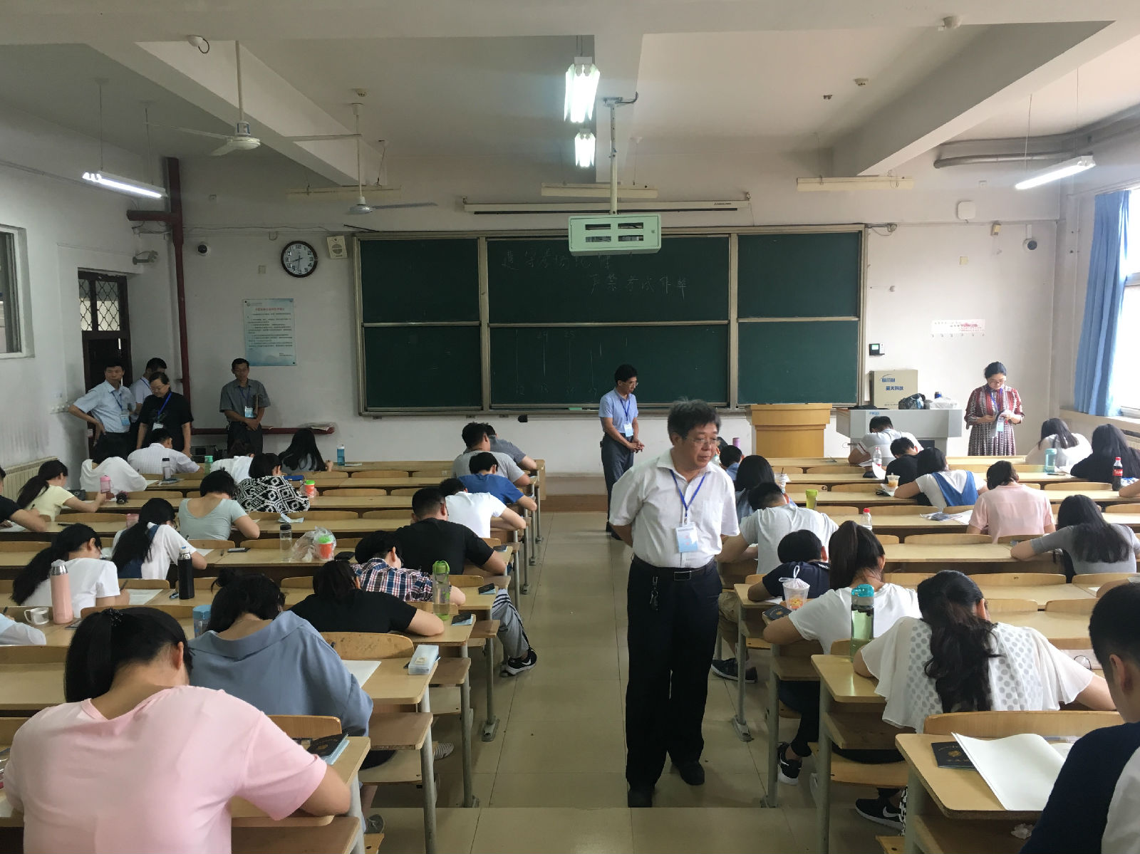 为加强考试管理,做好2016-2017学年第二学期期末考试工作,6月26日上午,yl23455永利集团执行院长薛德枢,党总支书记周向军,副院长李效珍、王贞,综合办公室主任刘青山,学生工作办公室主任王瑞,法学系主任张茂玉、中文系主任魏松英、经济管理系主任刘力榕等组成期末考试巡考小组,来到师专校区新教学楼相关考场,对yl23455永利集团期末考试各考场展开巡考。