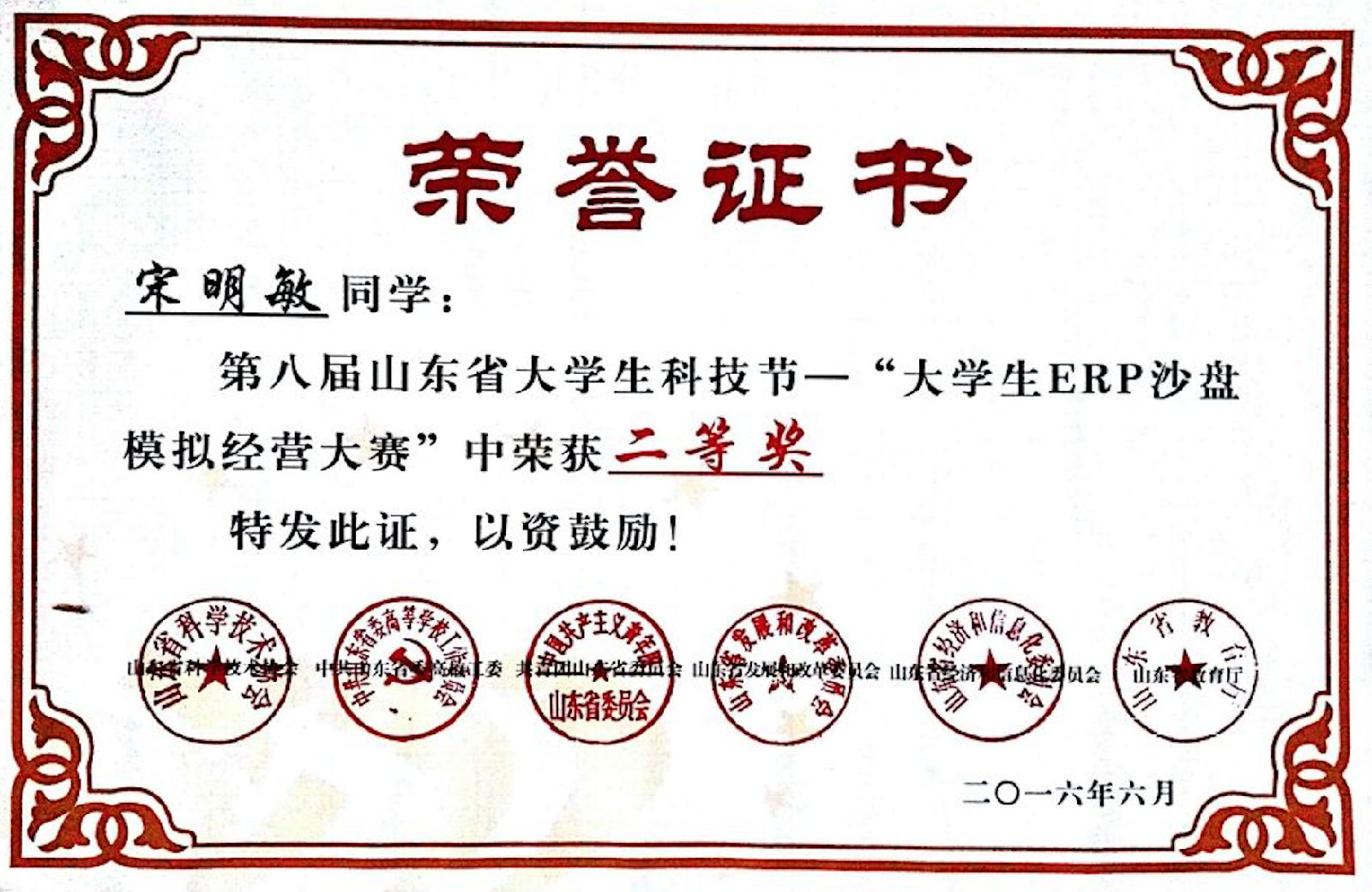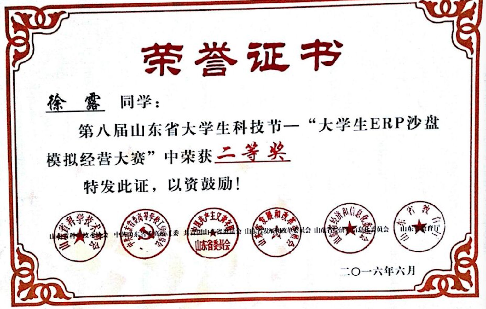 据悉,第八届山东省科技节暨第十二届全国大学生“新道杯”沙盘模拟经营大赛山东总决赛由山东省教育厅、山东省科技协会、中国高等教育学会高等财经教育分会主办,青岛理工大学(临沂)、新道科技股份有限公司承办。本届大赛共历时2天,全省35所高校的88支队伍参赛,大赛共设特等奖、一、二、三等奖四个奖项,赛事规模及参赛队伍质量均为历年最高水平。yl23455永利集团学生能够在竞争如此激烈的比赛中获得殊荣,是对yl23455永利集团培养应用型技术型人才工作的肯定与激励。