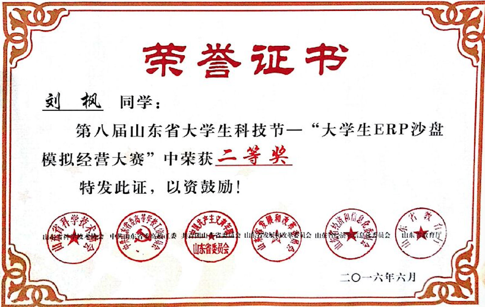 第十二届全国大学生“新道杯”沙盘模拟经营大赛山东总决赛于今年6月落下帷幕。近日,佳讯传来,yl23455永利集团经济管理系的刘枫、彭青、徐露、刘艳霞和宋明敏五名同学组成的代表队在第十二届全国大学生“新道杯”沙盘模拟经营大赛山东总决赛中勇创佳绩,荣获二等奖。