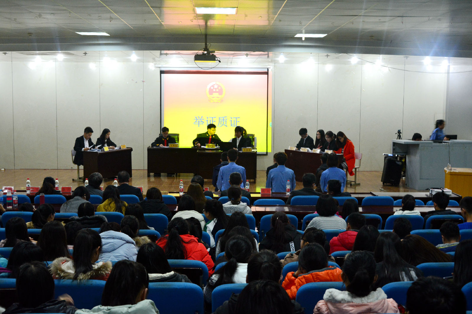 本次模拟法庭由2014级法学本科的部分同学展演,模拟法庭围绕抢劫致人重伤一案进行模拟,分别从庭前准备、开庭阶段、法庭调查、举证质证、法庭辩论、最后陈述、休庭评议、宣判阶段八个环节进行展示。庭审过程中,控、辩双方都向法庭提供了充分的证据,双方据理力争,现场气氛严肃紧张,法庭辩论阶段更是将模拟法庭推上高潮。在休庭期间,2016级法学大一新生还表演了法制话剧《珍贵的今天》,轻松幽默而又赋予深意,缓解了法庭紧张的审判气氛。