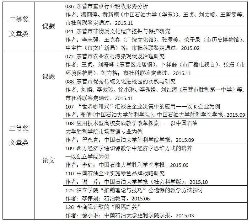 东营市社会科学优秀成果奖是市委市政府设立的我市社会科学优秀成果政府最高奖,每年评选一次,是展示我市社科研究水平、研究成果、研究力量的重要平台。此次整个评选过程牢牢把握正确导向,坚持公平、公开、公正原则,经评审专家科学、规范、严格评审,共评出优秀成果167项。其中一等奖19项,二等奖36项,三等奖86项,优秀奖26项。