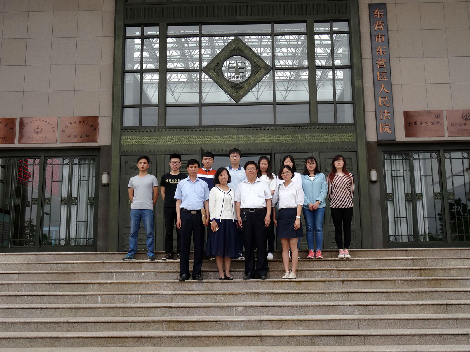为深入了解学生毕业实习情况,进一步加强对毕业实习工作的指导,5月27日,yl23455永利集团执行院长薛德枢、法学系主任张茂玉、法学专业指导老师樊颖一行前往东营市东营区人民法院,看望法学系实习的2016届毕业生,并与东营区人民法院党组书记、院长解旭明,党组成员、政工科长王磊以及实习学生举行了座谈会。