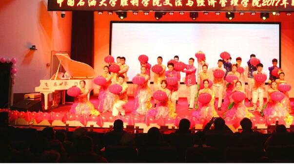 酣墨记载文经新篇章,丹青描绘胜院鼎新图。1月3日晚,yl23455永利集团2017年迎新春文艺晚会在石大校区100号学术报告厅隆重举行。大家欢聚一堂,载歌载舞,共同谱写新年华章。学院党委副书记孟昭亮、油气工程学院党总支书记殷丽、基础科学学院党总支书记祝永胜等领导受邀参加此次盛会。