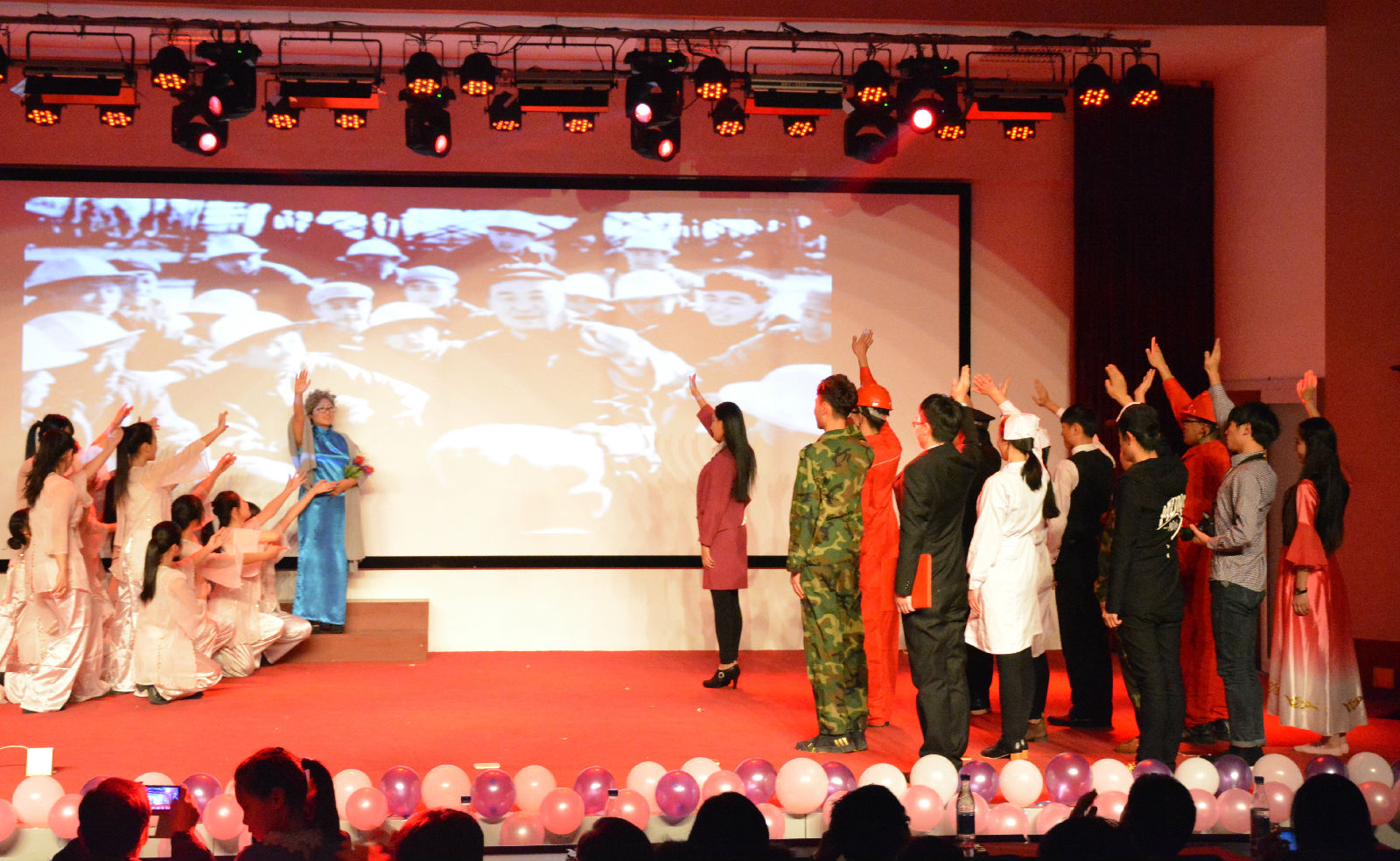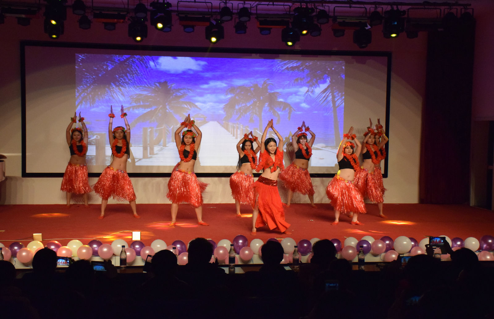 晚会在开场舞动感的节奏中拉开帷幕,演员们带来的舞蹈《落花情》以及歌曲串烧引得现场阵阵喝彩;一曲《光辉岁月》唱尽了我们大学生朝气蓬勃的活力;音诗画《老照片》动人至极,现场观众纷纷落泪;哑剧《诊所风波》形式新颖;精彩的《草裙舞》,让人眼前一亮;而由苏晓璐老师带来的钢琴独奏《出埃及记》更是把全场的气氛推向了高潮。最后,晚会在全体演员《青春修炼手册》的歌声中圆满落幕。