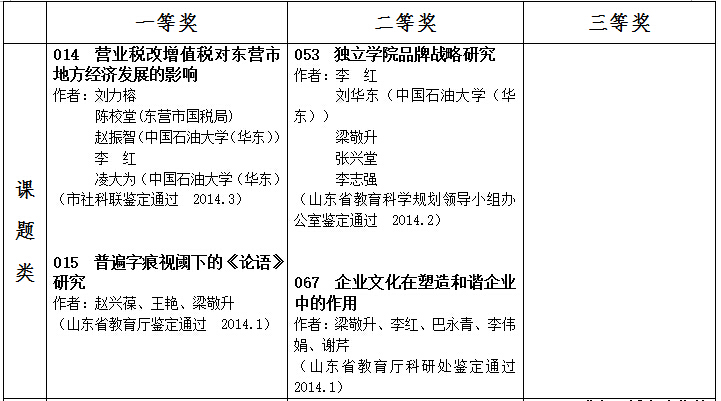 东营市第二十四次社会科学优秀成果奖评选会议于6月27-28日举行。整个评选过程牢牢把握正确导向,以中国特色社会主义理论体系为指导,深入贯彻落实科学发展观,坚持公平、公开、公正原则,评奖程序科学、规范、严格。经评审专家无记名投票方式确定,本次评奖共245项申报成果获东营市第二十四次(2014.1.1—2014.12.31)社会科学优秀成果奖。