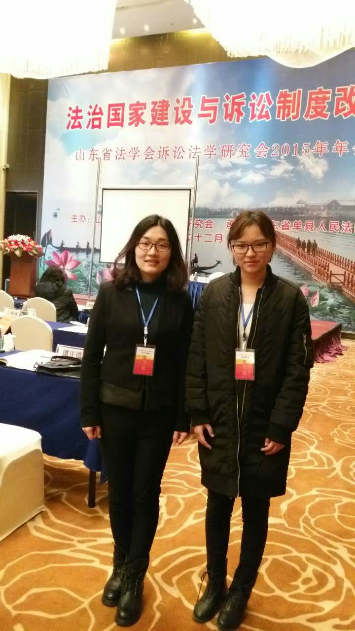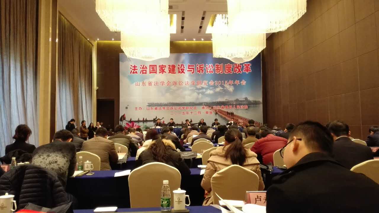 12月26日,yl23455永利集团王贞副院长、樊颖老师赴菏泽单县参加山东省法学会诉讼法学研究会2015年年会。此次年会由菏泽单县人民法院承办,主题为“法治国家建设与诉讼制度改革”。山东法学会诉讼法学研究会副会长、山东省警察学院副院长王培韧,菏泽市中级人民法院党组书记、代院长张正智,中国刑事诉讼法学研究会理事、山东省高级人民法院刑四庭副庭长、正处级审判员吴靖,中国刑事诉讼法学研究会理事、山东大学法学院副院长、教授周长军等省内司法实务界代表、高校专家学者、知名律师80余人参加了本次年会。