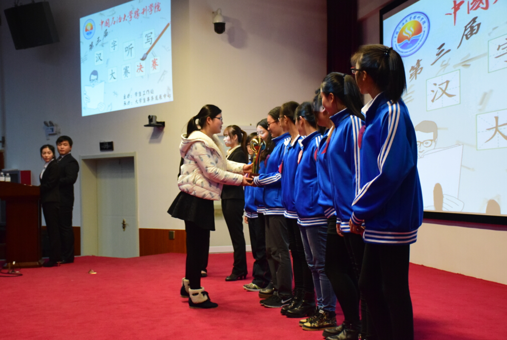12月10日下午7点,由学生工作处主办的“中国石油大学第三届汉字听写大会”决赛在石大校区100号学术报告厅举行。学工处副处长张超及各院老师担任大赛评委。yl23455永利集团两支代表队进入决赛。
