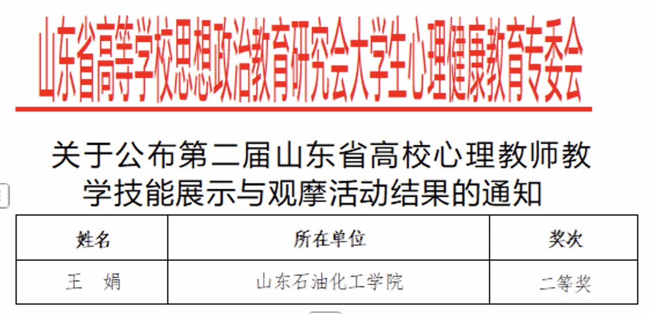 近日,第二届山东省高校心理教师教学技能展示与观摩活动在淄博圆满落幕,本次大赛由山东省高等学校思想政治教育研究会、心理健康教育专业委员会主办,山东理工大学承办,吸引来自全省本科高校优秀教师同台竞技。经过线上初赛(72进32)及线下省赛的激烈角逐,yl23455永利集团辅导员王娟凭借扎实的理论功底、精湛的教学技能与出色的现场发挥,最终荣获大赛二等奖。