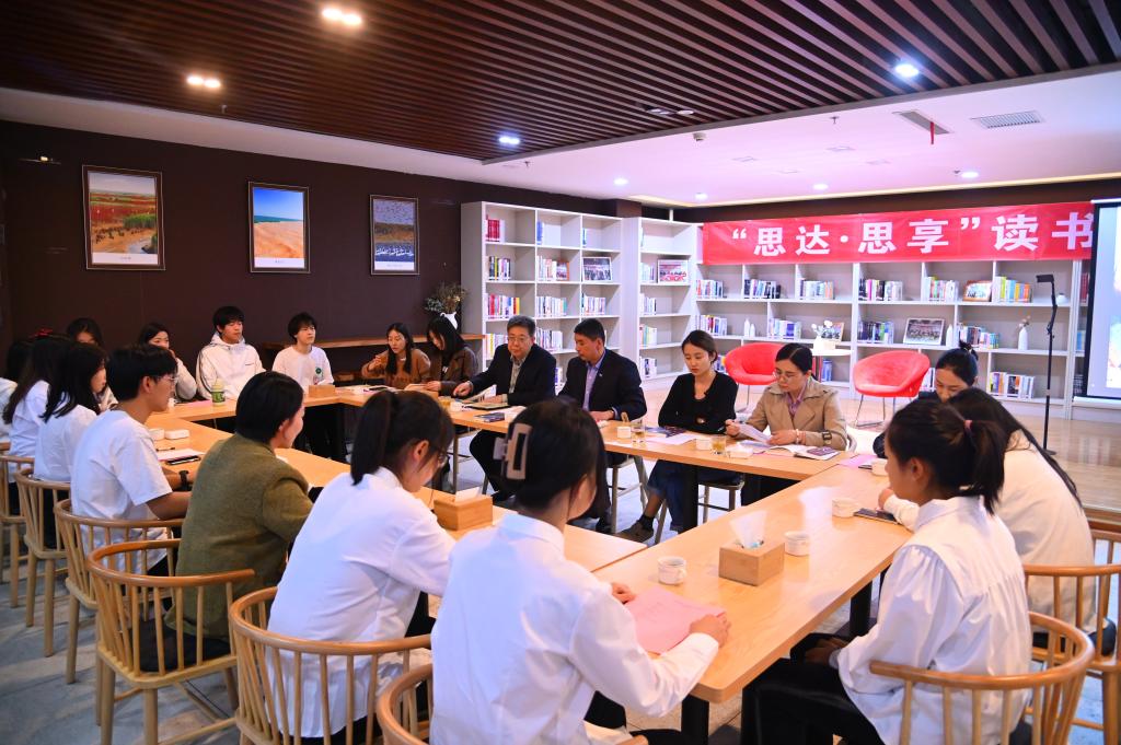 为深入推进学习贯彻习近平新时代中国特色社会主义思想主题教育,引领师生争做新时代的奋斗者,4月24日,经济管理与文法学院联合图书馆,在图书馆一楼咖啡厅举办“思达·思享——守正创新 修为修心” 弘扬传承工匠精神主题读书会。经济管理与文法学院、图书馆负责人及师生代表40余人参加活动。