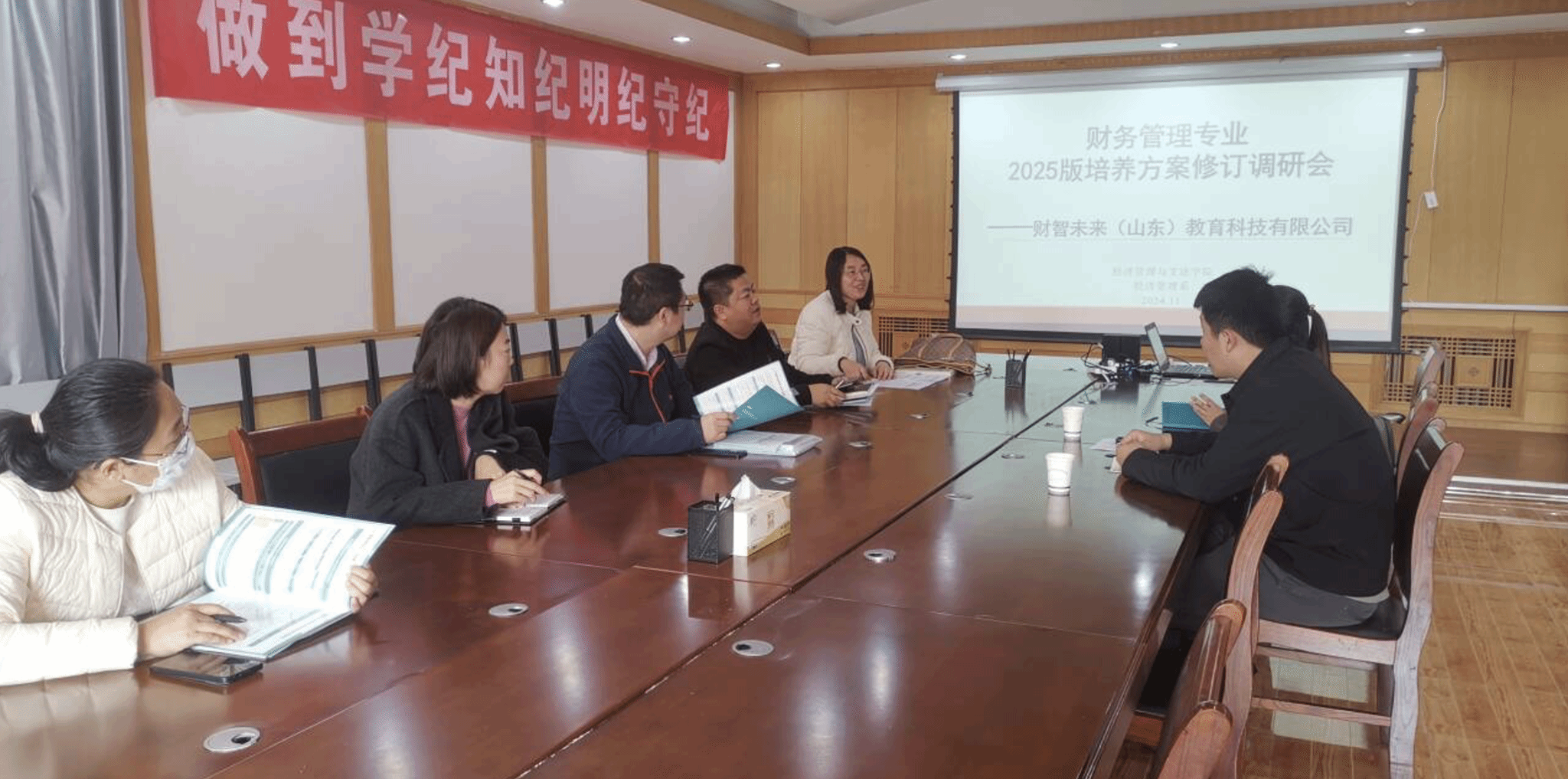 为提升数智时代人才培养质量、培养高素质应用型人才,11月21日上午,经济管理系在经法楼209会议室召开财务管理专业、数字经济专业2025版人才培养方案修订行业企业专家调研会。副院长张朋程、经济管理系主任闫光芹、副主任谢芹和专业教师代表参加了会议。会议邀请到了山东知链信息科技有限公司、财智未来(山东)教育科技有限公司的行业企业专家共同探讨“四新”背景下数智化人才培养的相关议题。