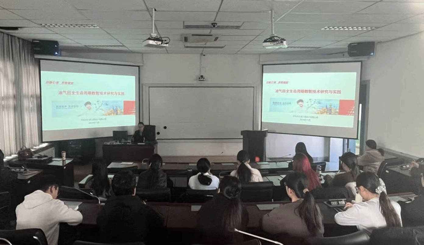 在本次讲座中,李其锐围绕“创新引领、数智赋能”,依托油田地面工程建设实例,从理论层面向学生全面讲解了数字孪生的概念、发展历程以及国内外发展现状等,并从实践层面向学生展示了数字孪生技术在管道运输、站场管理和新能源开发等多个领域的成功运用。讲座最后,李其锐为学生答疑解惑,分享宝贵的学习与工作经验。