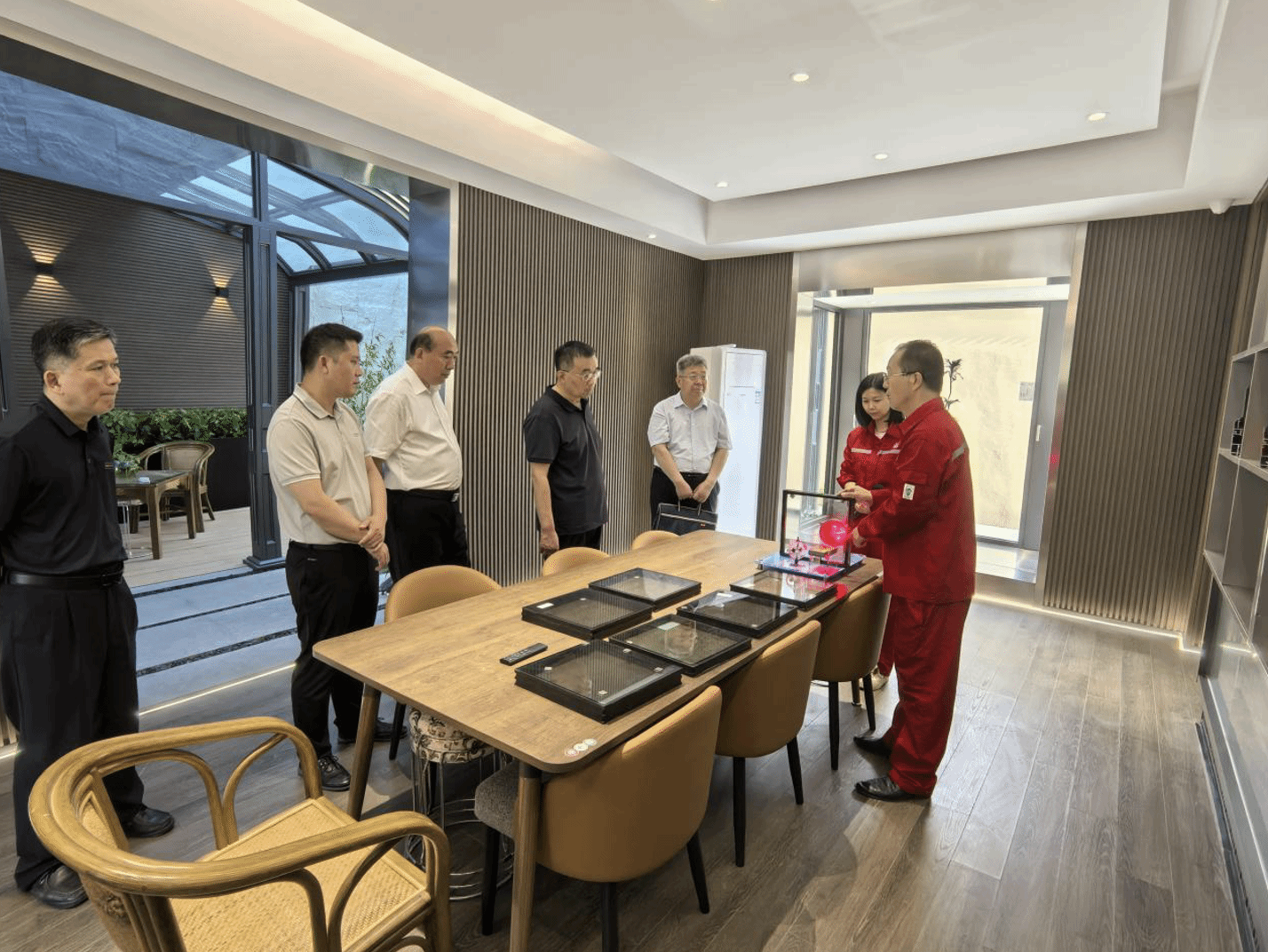 座谈会后,马洪军一行参观了胜明玻璃园区,实地考察了企业生产车间、产品展厅,详细了解了园区的特色和产品优势。