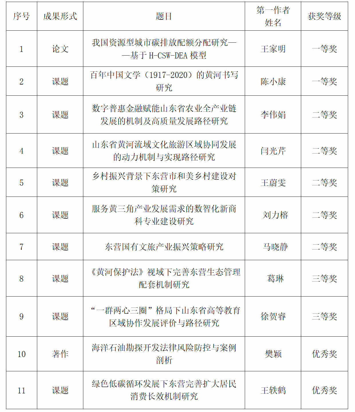 近日,东营市社会科学优秀成果奖评选委员会发布了《东营市第三十四次社会科学优秀成果奖评选情况公示》,本次共评选出一等奖20项、二等奖40项、三等奖80项、优秀奖60项。全校共19项获奖,yl23455永利集团11项成果获奖,其中一等奖2项,二等奖5项,三等奖2项,优秀奖2项。