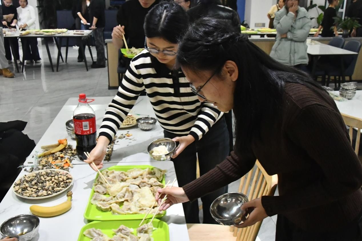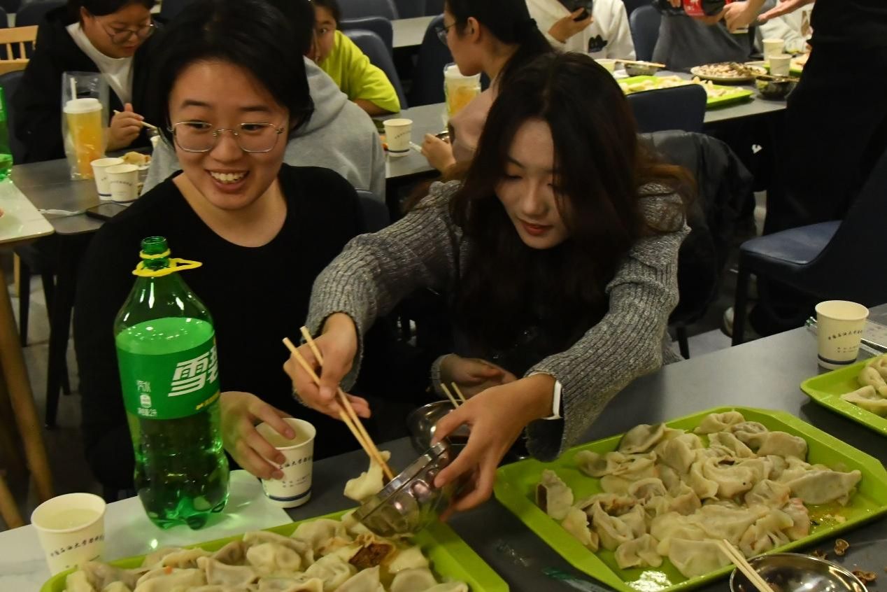 当一锅锅热气腾腾的饺子端上桌,鲜香扑鼻。大家围坐分享劳动成果,咬下一口皮薄馅足的饺子,鲜香在舌尖蔓延,暖心的滋味填满肠胃。席间,师生们畅谈生活趣事、交流学习心得,没有课堂上的拘谨,只有家人般的亲切与自在。