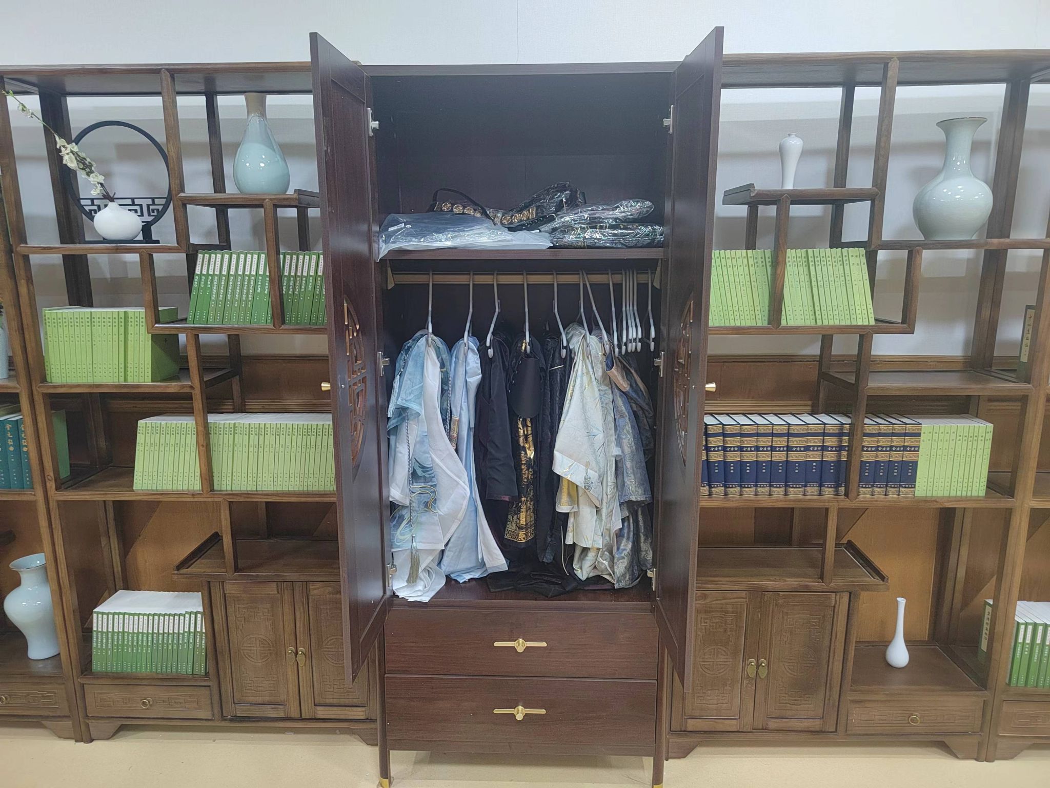 国学实训室创建于2024年,现有完善的软硬件设施,包括国学几案、教师古风书案、古琴、博古架、汉服、古典文学书籍、传统文化摆件、触控一体机、多功能一体机、茶吧机等,可以满足不同规模的学习活动需求。这里不仅是一个学习的场所,更是一个传承和弘扬中华传统文化的重要阵地。